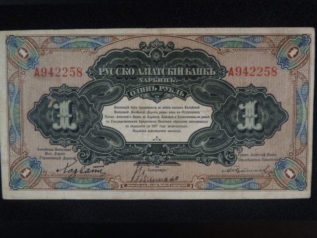 1 Ruble 1917, Rusko-asijská banka Charbin (Dmitrij Chorbat), Pi. S474 China