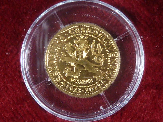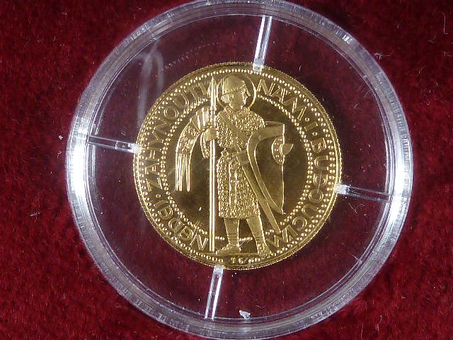 Jubilejní Svatováclavské dukáty, 1 Dukát prvoražba návrhu Josefa Šejnosty r. 1923, číslo 16, vydala Numizmatika Kremnica, Au 986, 3,5g, náklad 100 ks