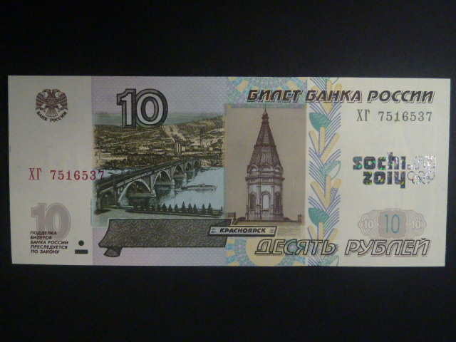 10 Rubles 2014 pamětní SOCHI olympiáda - stříbrný přítisk