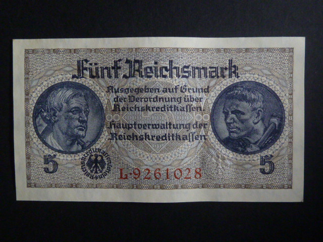 vydání pro obsazené území 1939-45, 5 Reichsmark série L, Ros. ZWK-4a