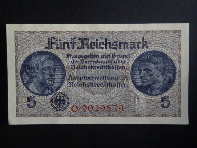 vydání pro obsazené území 1939-45, 5 Reichsmark série O, Ros. ZWK-4a