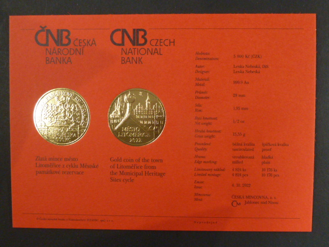 5000 Kč 2022 Městské památkové rezervace - město Litoměřice, 1/2 OZ