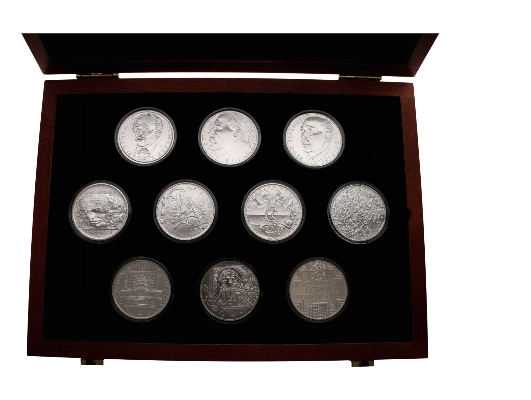 Sada 500 Kč mincí 2011 - 2020, společná dřevěná etue, certifikáty_