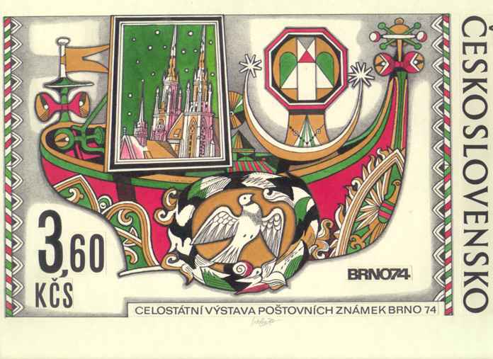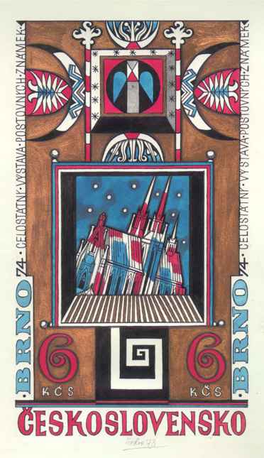 3.60Kčs Brno 1974 od J.Lieslera, karton 18 x 29.5