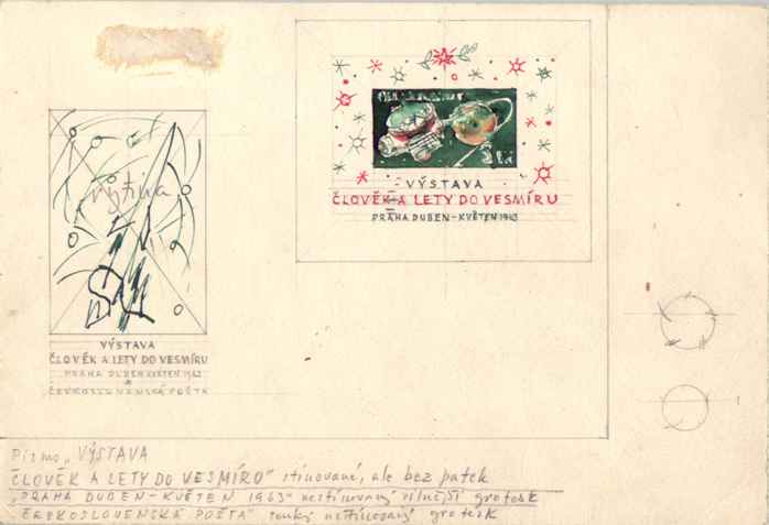 A 1308 + FDC Kosmos 1963 od F.Hudečka, karton 15 x