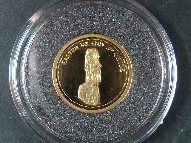 • 5 Dollars 2006 Velikonoční ostrov, Au 585/1000, 1,25g, průměr 13,92 mm